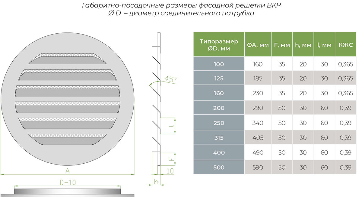 Круглая наружная решетка ВКР предназначена для установки в воздуховод круглого сечения как на приток, так и на вытяжку.