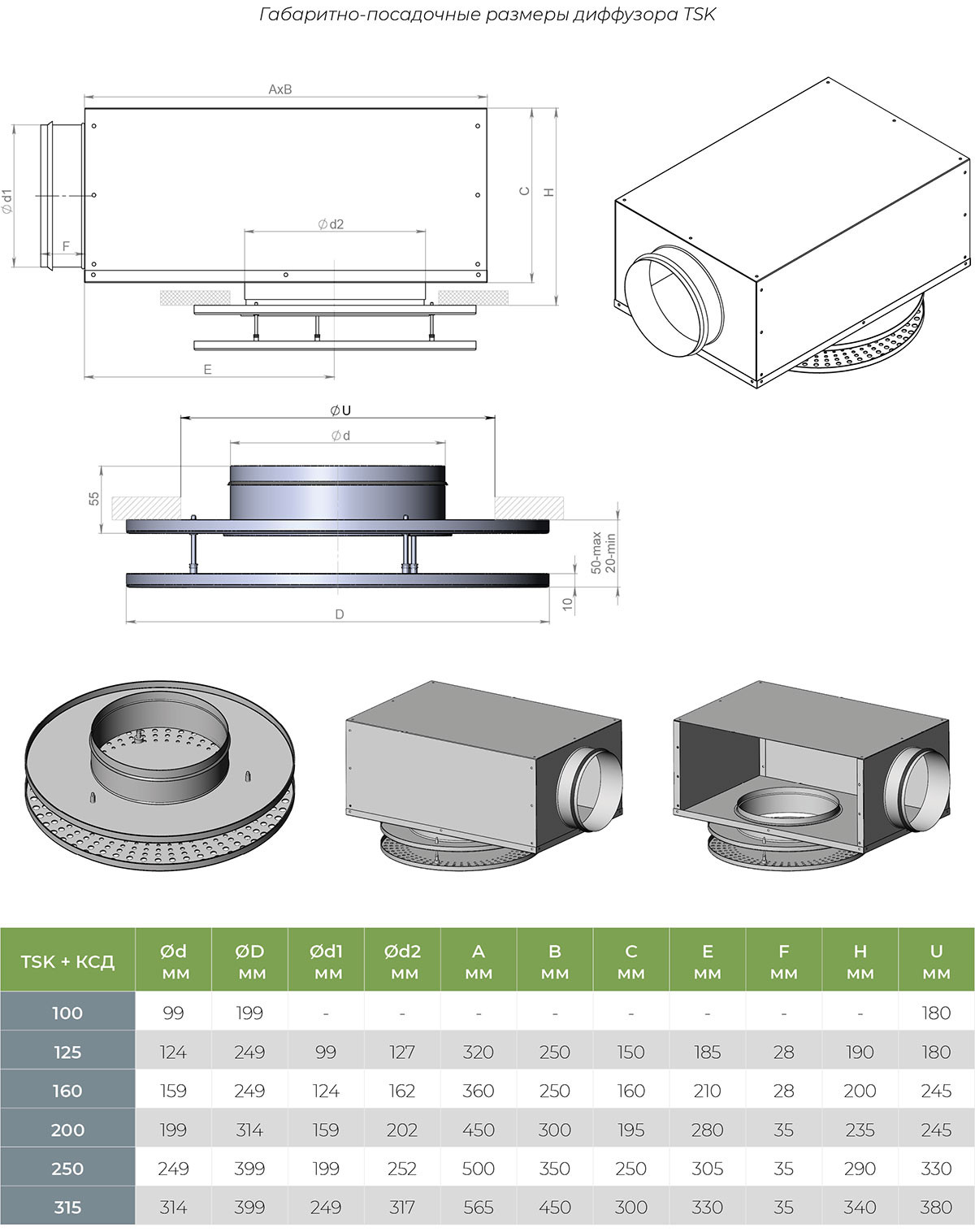 Поставляется в следующих диаметрах: ø100, ø125, ø160, ø200, ø250, ø315.